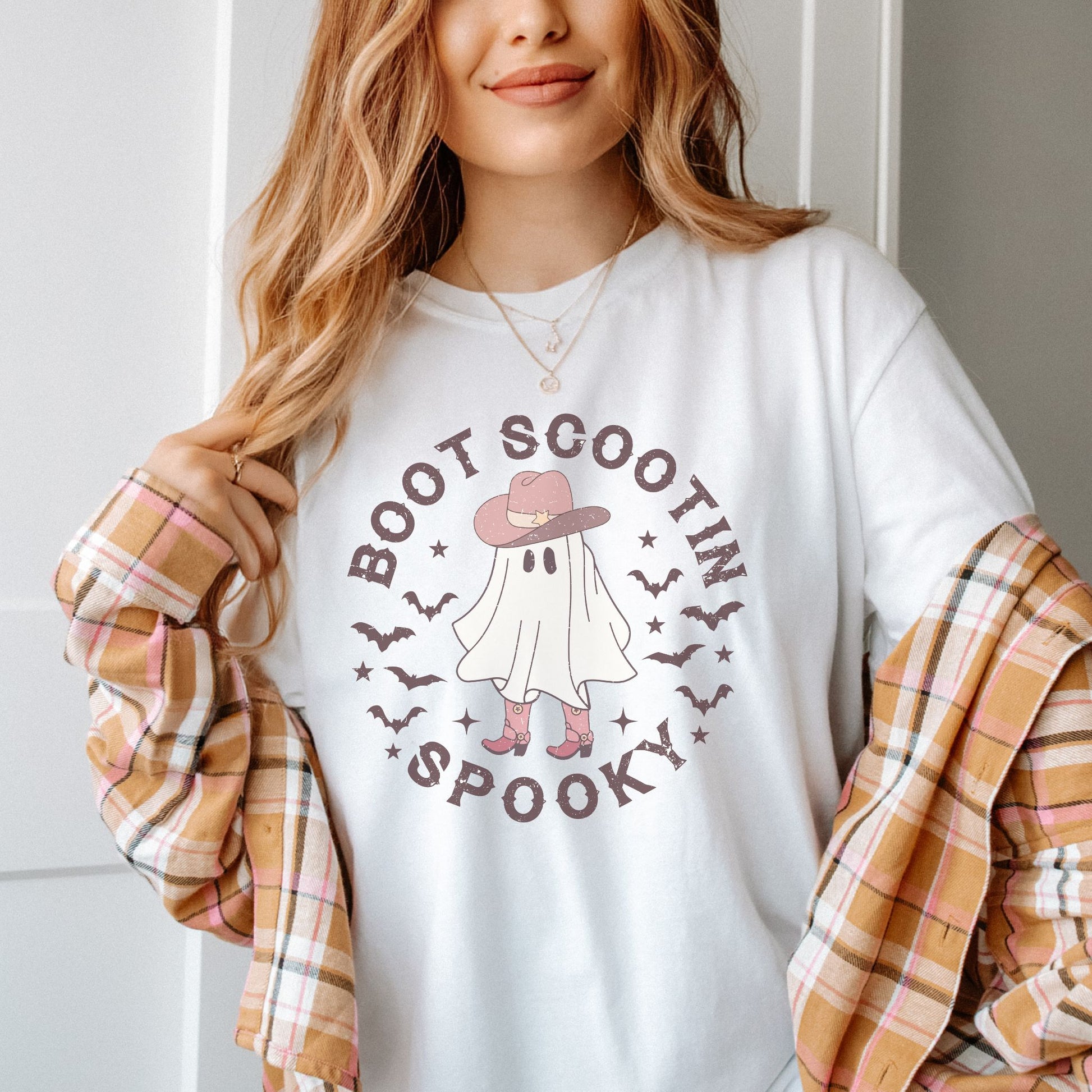 Saddle up for a hauntingly good time with our Boot Scootin' Spooky T-Shirt! This isn’t just any Halloween shirt—it’s the ultimate western Halloween shirt for all you cowgirl spirits out there. Featuring a boot-scootin' ghost ready to dance the night away, this cowgirl ghost shirt is perfect for adding a little yee to your boo. Whether you're line dancing under the moonlight, trick-or-treating in your cowboy boots, or just looking to add some western flair to your spooky season, this shirt has got you covered. Why settle for a plain old costume when you can be the most boot-scootin', ghostly gal in town? Grab your Boot Scootin' Spooky T-Shirt today and get ready to wrangle up some Halloween fun with a country twist!