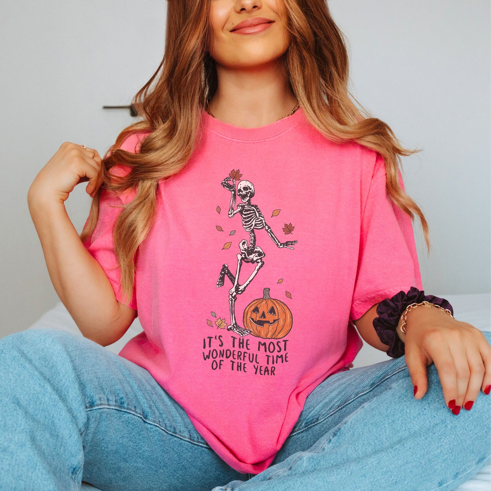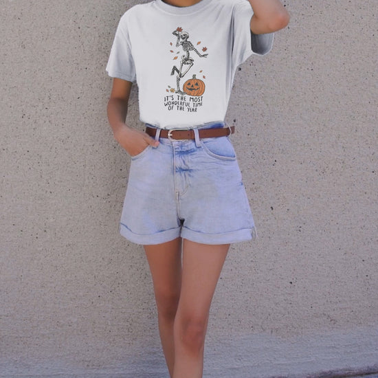 Get ready to spook up your wardrobe with our halloween skeleton shirt! Perfect for all the halloween loving gals out there, this Women’s Halloween shirt is a must-have for the spooky season. Whether you're sipping pumpkin spice lattes or planning the perfect Halloween party, this cute fall shirt will keep you in the festive spirit.