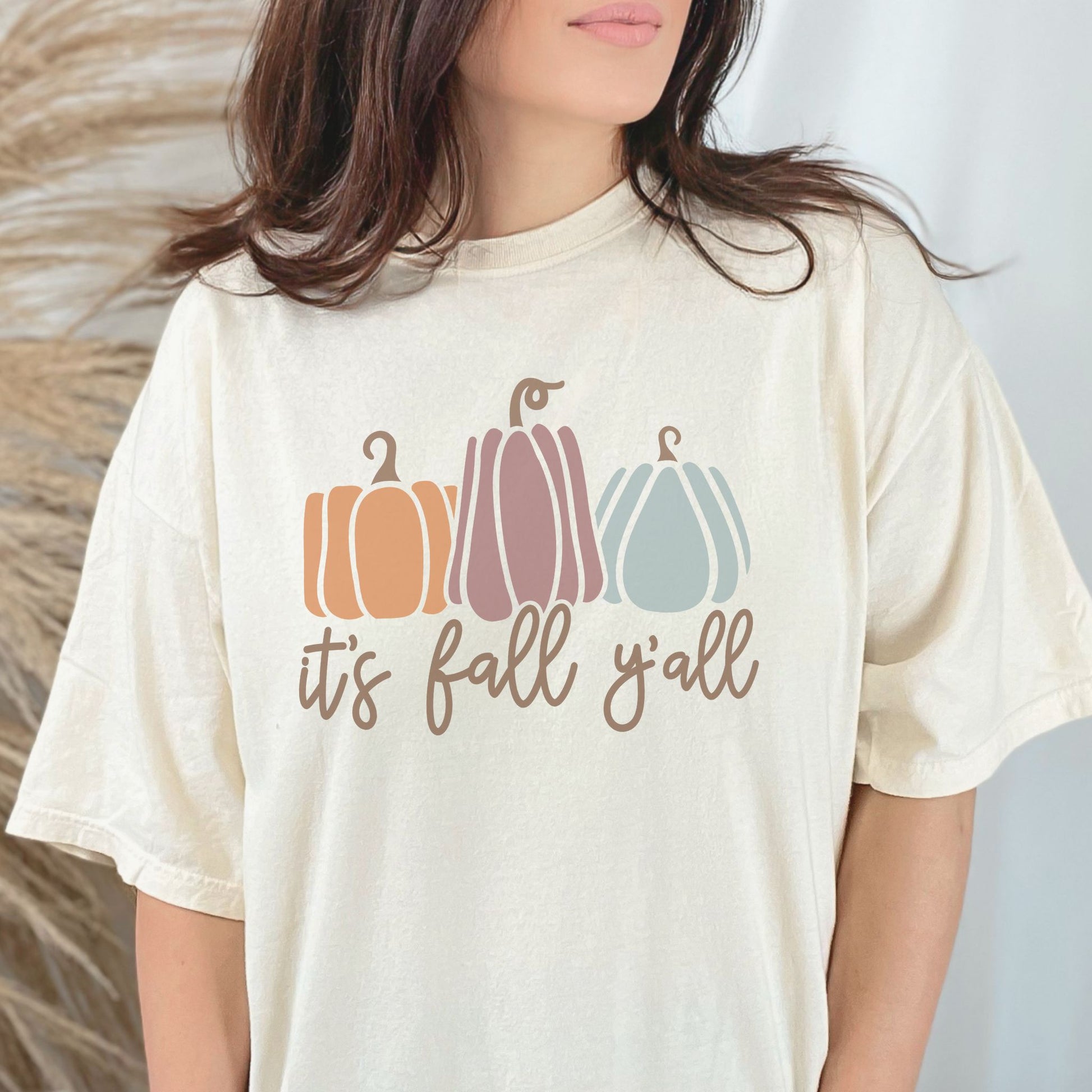 Get ready to embrace the fall vibes with our “It’s Fall Y’all” shirt! This isn’t just any autumn attire—it's the ultimate fall pumpkin shirt for those who want to flaunt their love for the season in style. Featuring a pumpkin so cute it might just win the “Best Dressed” award at your Thanksgiving feast, this Thanksgiving shirt is perfect for gobbling up the season's festivities. Whether you're carving pumpkins, dodging cranberry sauce, or just enjoying cozy sweater weather, this autumn shirt has got you covered. So, if you're ready to let everyone know that you’re all about those autumn vibes and pumpkin spice everything, grab your “It’s Fall Y’all” Shirt today.