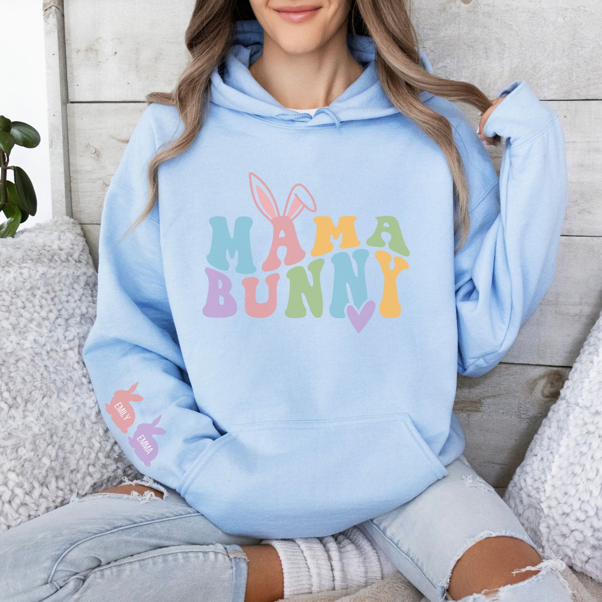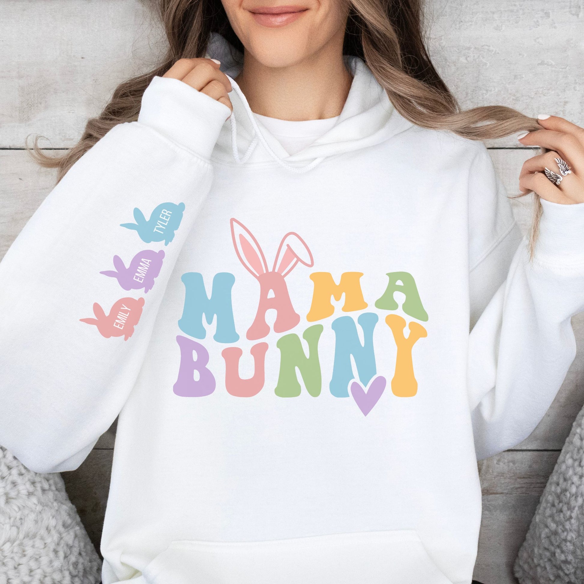 Personalized Mama Bunny Hoodie with Kids' Names on the Sleeve