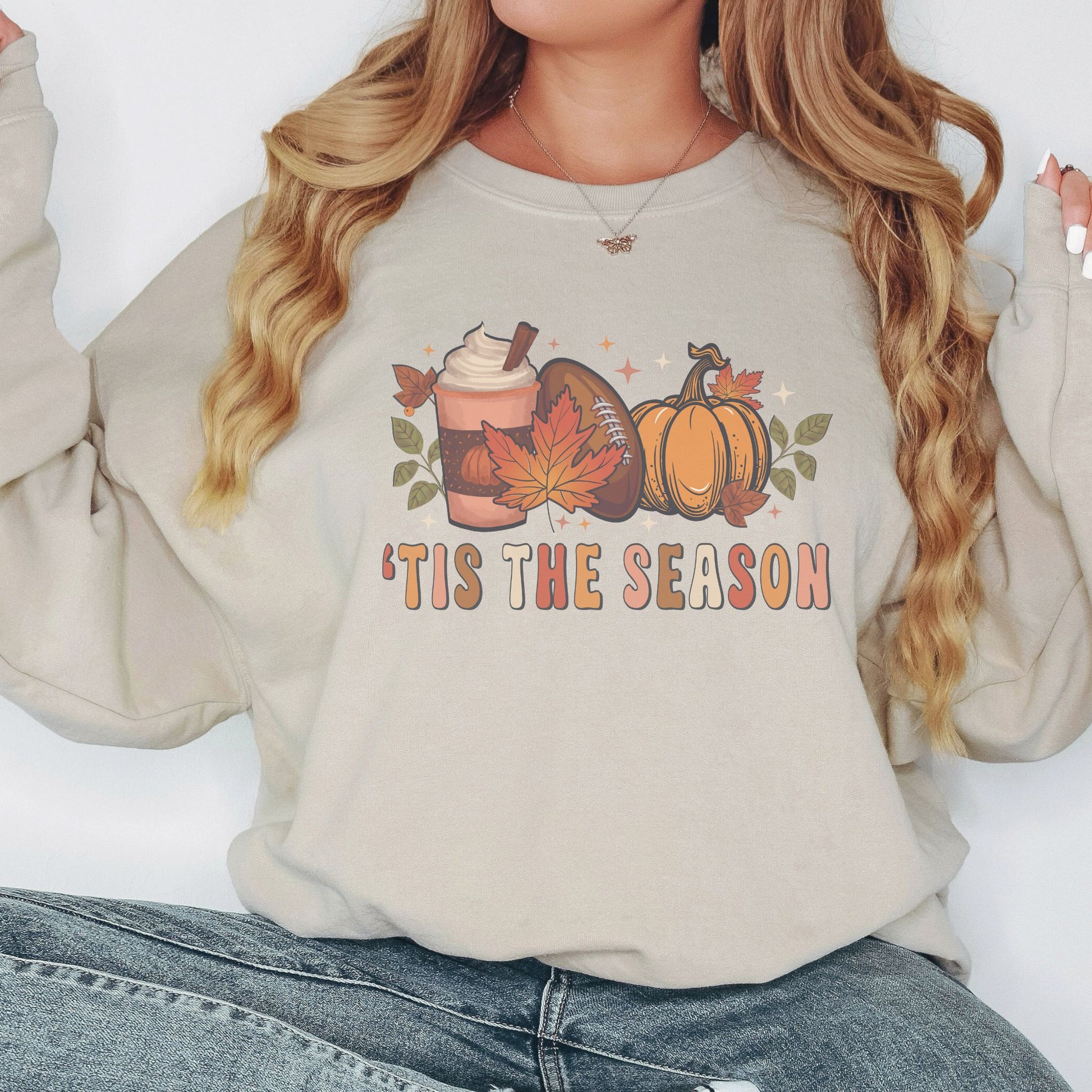 Fall into style with our "'Tis the Season" fall football sweatshirt! If you’re a coffee-sipping, pumpkin-picking, football fanatic, this sweatshirt is the perfect blend of all your autumn favorites. Whether you're cheering on your favorite team, sipping on a pumpkin spice latte, or just enjoying the crisp autumn air, this fall coffee sweatshirt has got you covered. Featuring a playful design that celebrates all things fall, it’s perfect for those who believe that ‘tis the season for football, pumpkins, and endless cups of coffee. Why settle for one fall favorite when you can have them all? Embrace the season with a sweatshirt that celebrates everything you love about autumn. Grab your "'Tis the Season" fall football sweatshirt today and get ready to score some major style points this season!